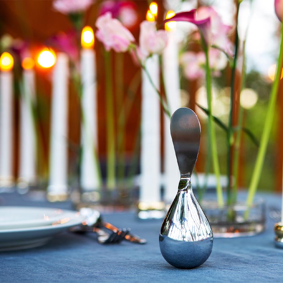 Tilt Smörkniv från Klong är en lekfull och smart detalj på det dukade bordet. Tack vare den genomtänkta tyngdpunkten i handtaget kan kniven gunga fram och tillbaka utan att falla och kladda ner ytan. Perfekt för smör, sylt och andra tillbehör.