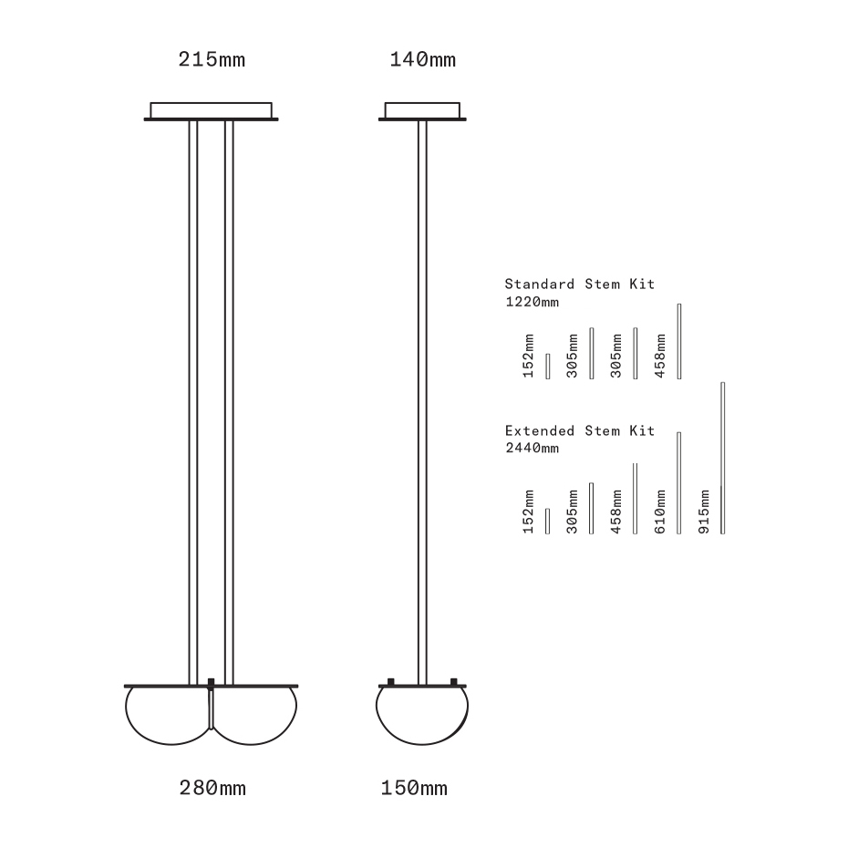En förlängd stångsats finns som tillval med ytterligare längder upp till 91,5 cm. Anpassade stånglängder kan erbjudas mot tillägg.