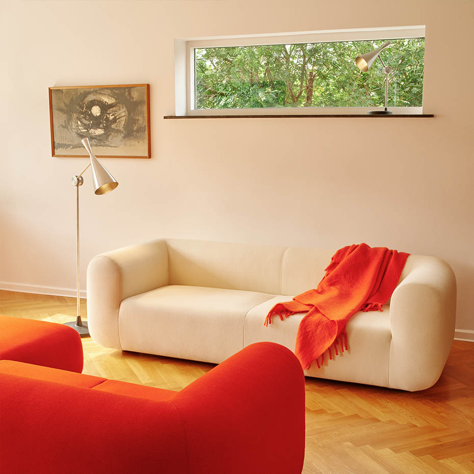 Unbeaten LED Golvlampa är en modern vidareutveckling av Tom Dixons klassiska Beat-serie. Tillverkad i Indien av skickliga hantverkare i återvunnet aluminium, kombinerar den industriell precision med tidlös design. Lampan sprider ett varmt och riktat ljus, perfekt för både arbete och stämning.