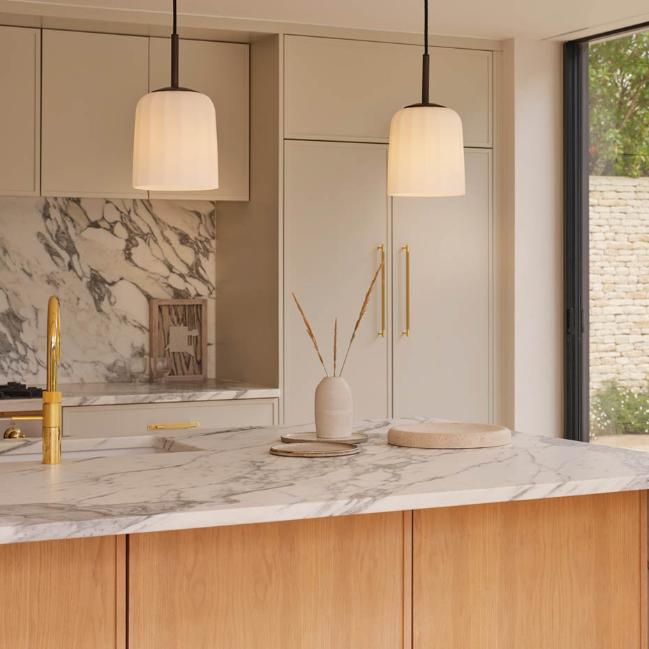 Veo 180 Pendel från Astro Lighting är en elegant pendellampa med ett räfflat glas som ger ett mjukt och stämningsfullt ljus. Den klassiskt inspirerade formen tillför tidlös elegans och gör lampan perfekt över matbord, i vardagsrum eller som dekorativ belysning i hallen. Veo skapar en varm atmosfär och passar lika bra i moderna som traditionella miljöer.