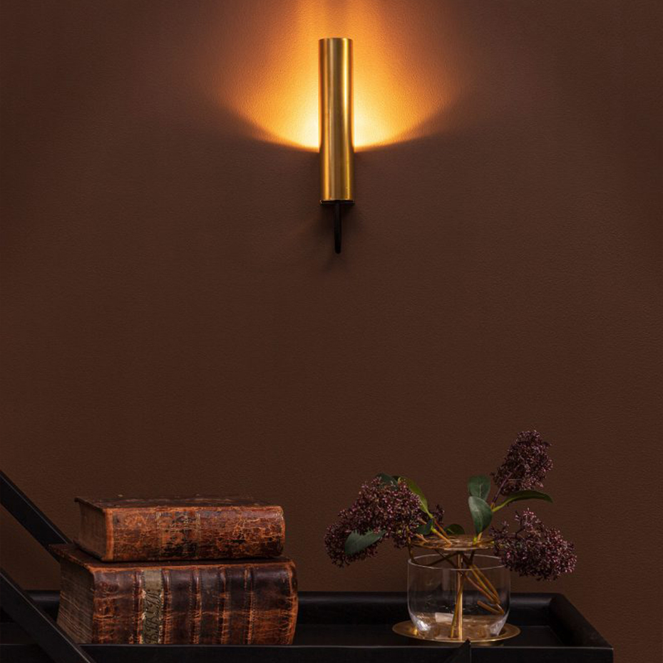 Bredd: 4,5 cm Djup: 6,5 cm Höjd: 21 cm Ljuskälla: Integrerad Material: Rå mässing Montering: För fast montage Sockel: LED, 150 lm 3000 K Övrigt: Dimbar med bakkantsdimmer