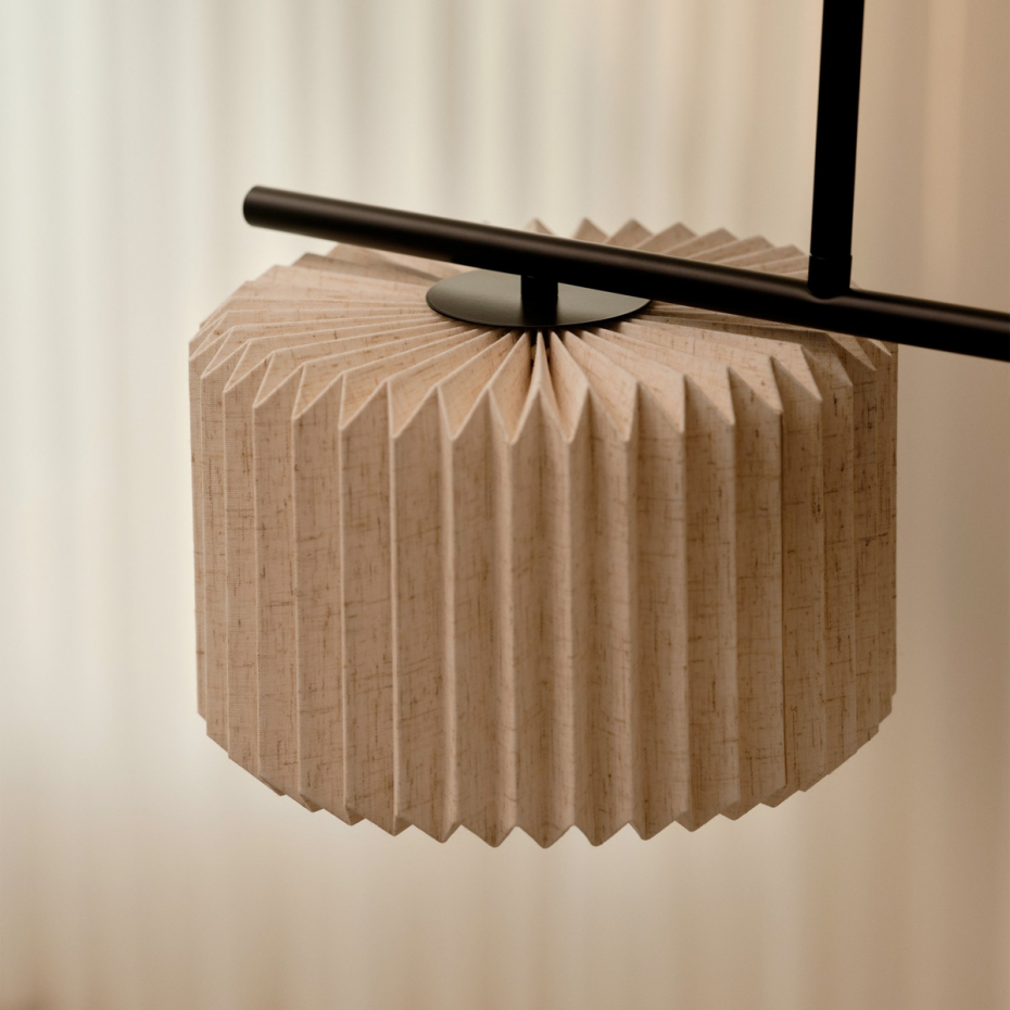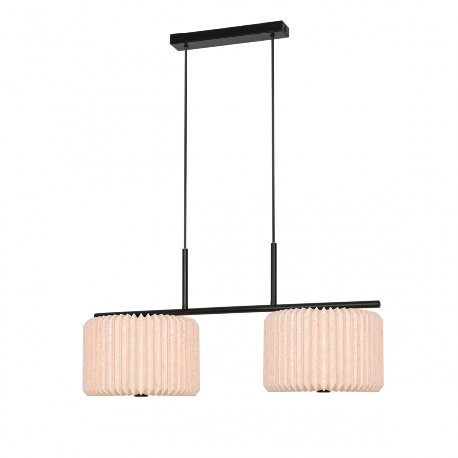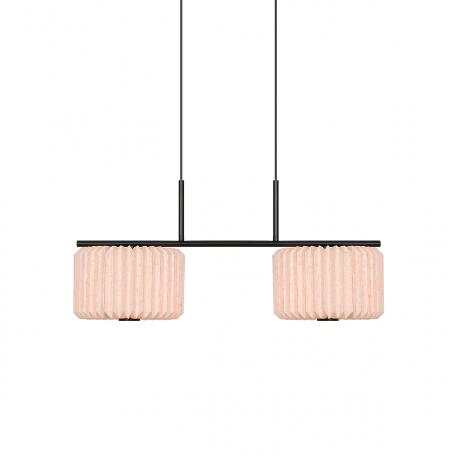 Vivienne Dual Pendel från Nordlux kombinerar tyg och metall i en tidlös och elegant design. De plisserade textilskärmarna ger ett mjukt och dekorativt uttryck som skapar ett diffust ljus, vilket tillför värme och komfort till rummet. Denna modell är ett perfekt val för att få en mjuk belysning ovanför matbordet.
