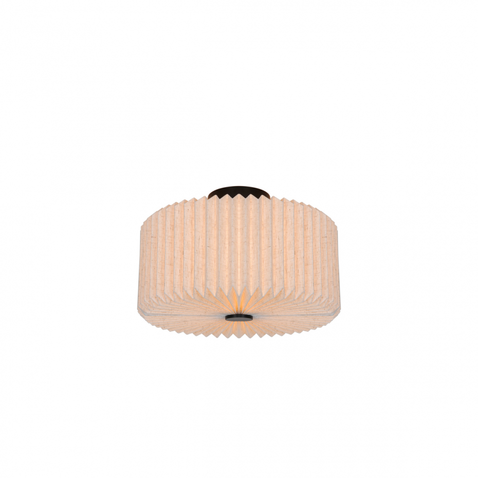 Vivienne Plafond från Nordlux kombinerar tyg och metall i en tidlös och elegant design. Den plisserade textilskärmen ger ett mjukt, dekorativt uttryck och skapar ett diffust ljus som tillför värme och komfort till rummet. Den är ett perfekt val för att få till en mjuk och behaglig belysning i sovrummet.