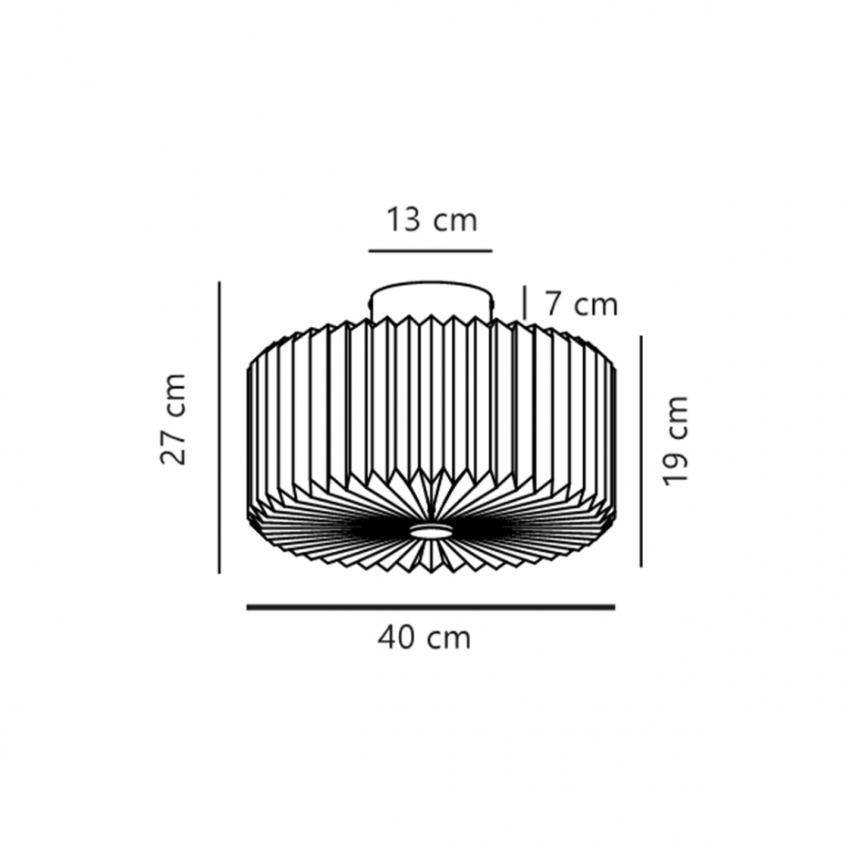 Diameter: 40 cm (skärm), 13 cm (fäste) Höjd: 27 cm Ljuskälla: Ingår ej Material: Textil/Metall Montering: Krokupphäng Sockel: E27, Max 15 W