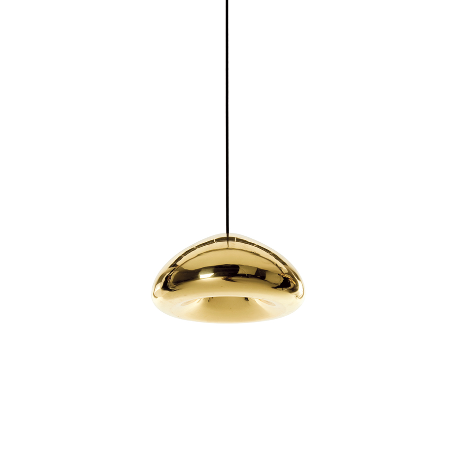 Void LED Pendel från Tom Dixon är tillverkad i pressad metall med polerad finish. Den avger ett riktat nedåtriktat ljus och fungerar utmärkt över bord, i kök eller som grupp. Form och yta reflekterar omgivningen och skapar djup.