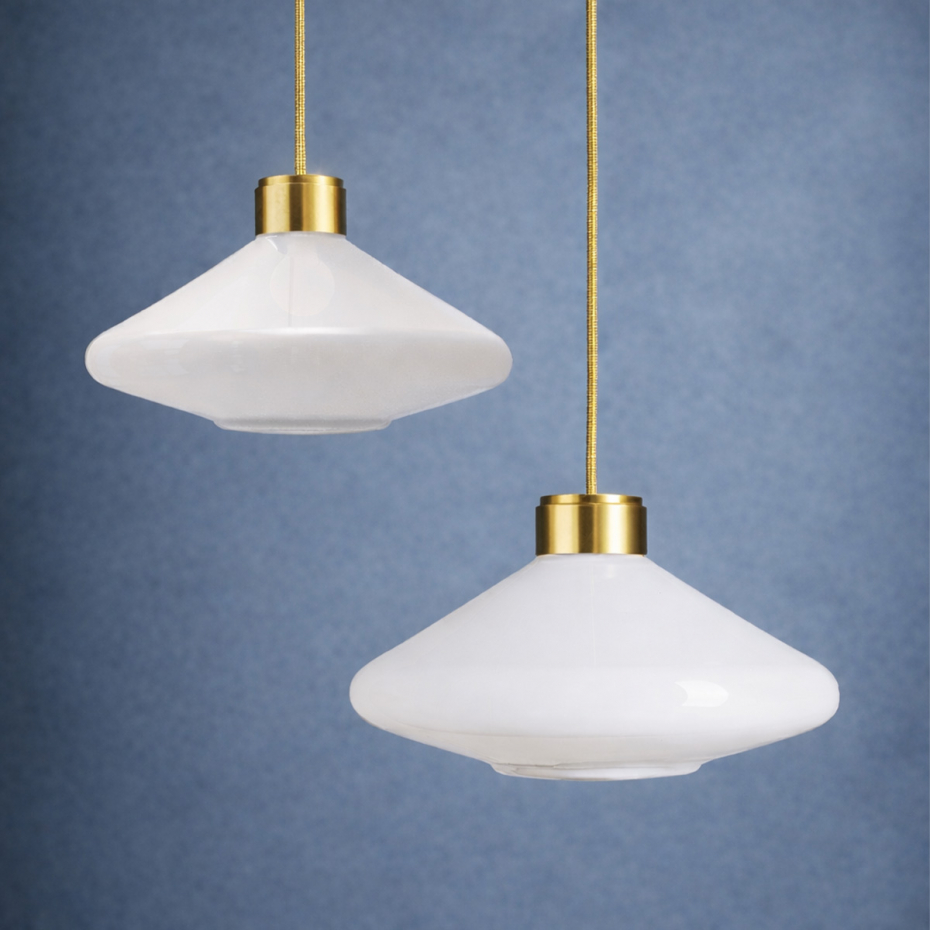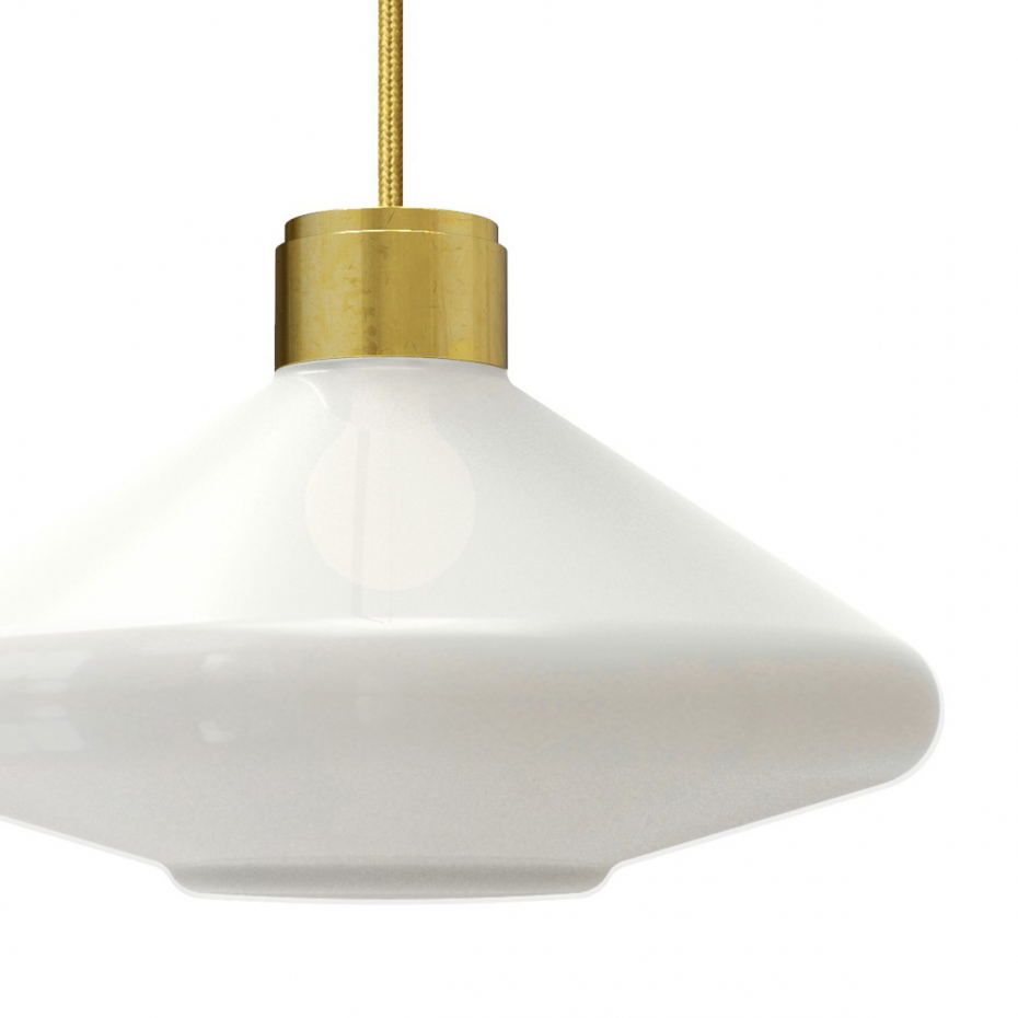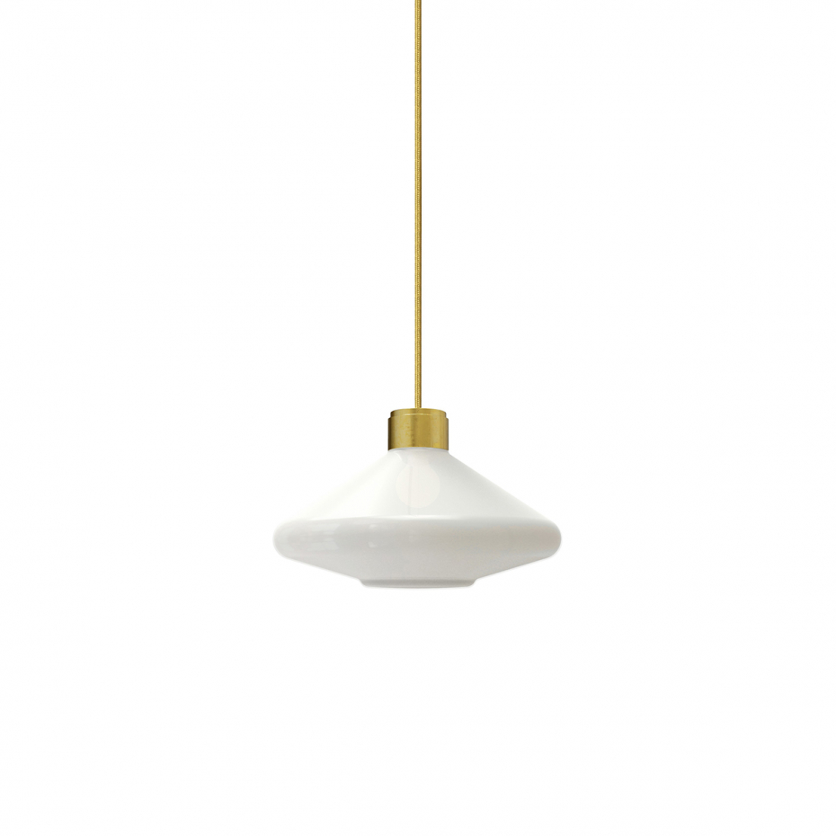 Diameter: 35 cm Höjd: 27 cm Ljuskälla: Ingår Material: Handblåst opalglas/Borstad mässing Montering: Takkrok Sladdlängd: 1,4 m Sockel: E27, Max 60 W