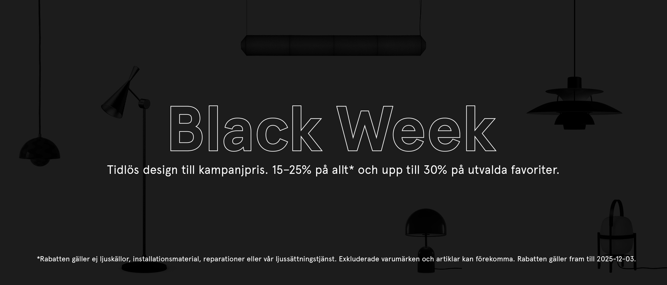 *Rabatten gäller ej ljuskällor, installationsmaterial, reparationer eller vår ljussättningstjänst. Exkluderade varumärken och artiklar kan förekomma. Rabatten gäller fram till 2025-12-03.